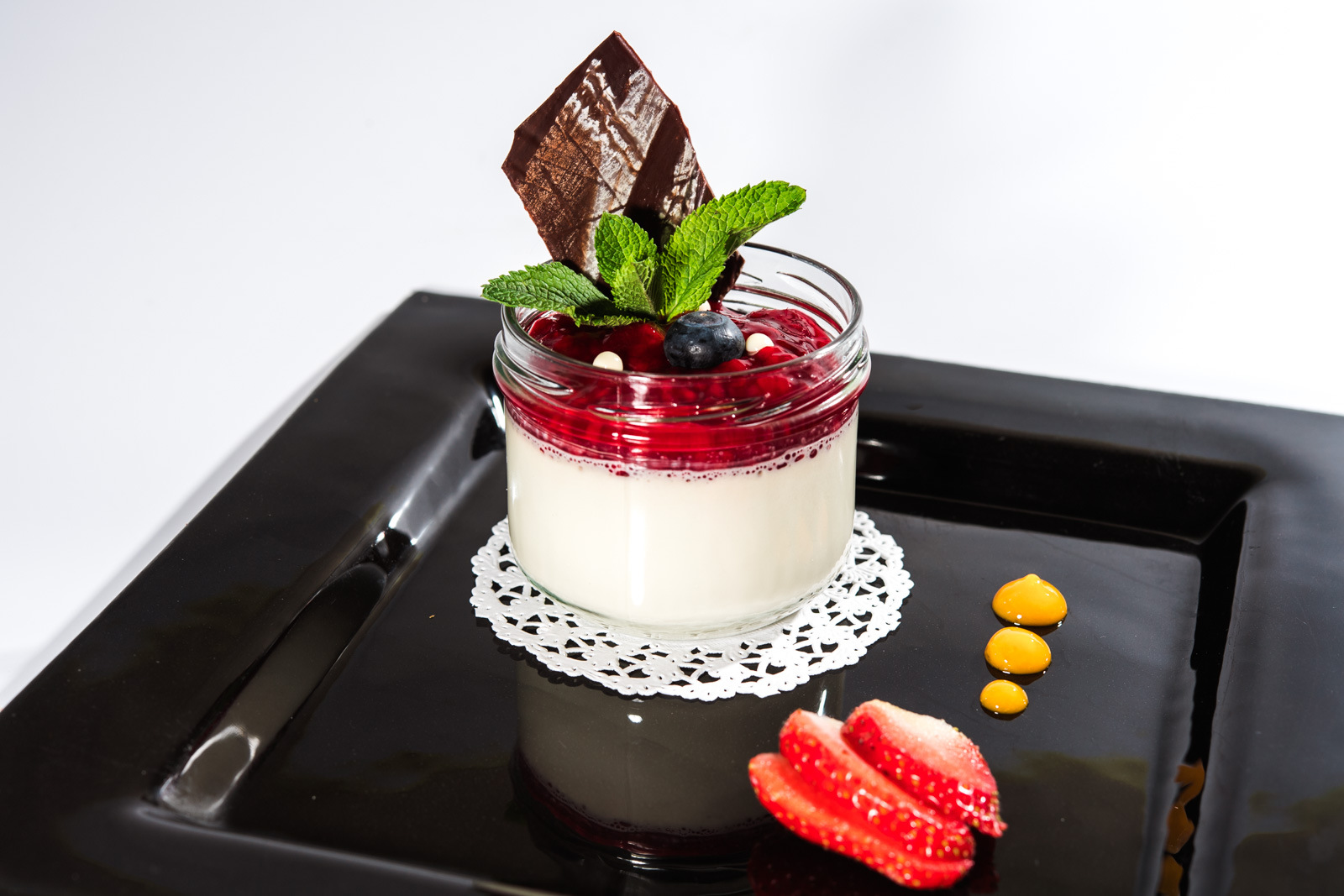 SLADICE (1) jagodni cheesecake (2) panna cotta z gozdnimi sadeži (3) čokoladni mousse